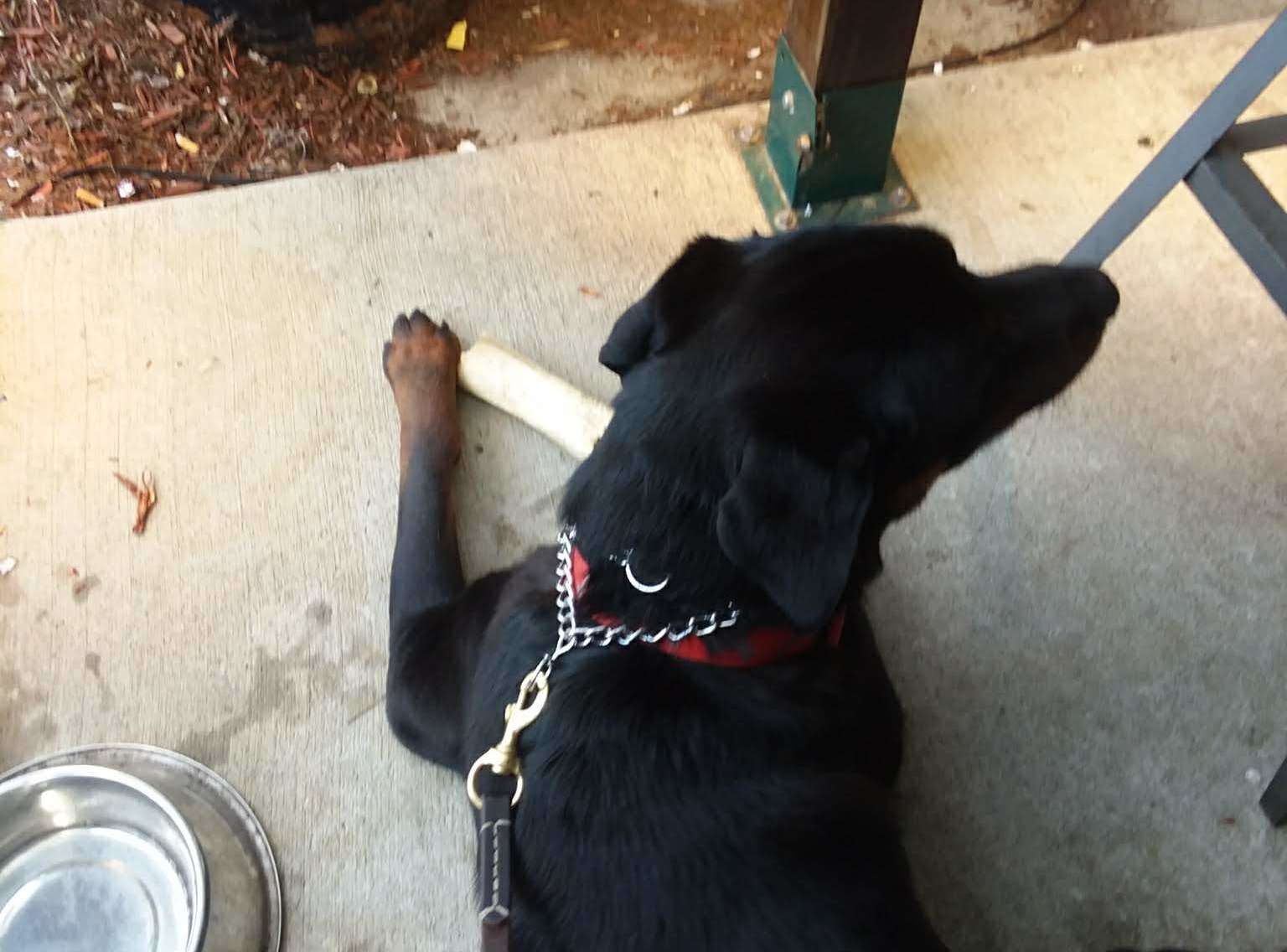 Hercules pulled to see the dog but not too bad. He eventually gave up and focused on his bone while I ate. He was very good most of the time! He gets a bit bored but what pup wouldn’t? When the pup left Hercules watched but didn’t pull to go after him. Good job buddy! I HOPE he does as well for you tomorrow! See you then!